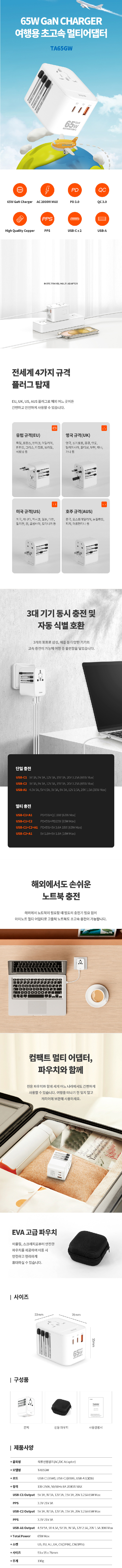 Gan Charger ¿©Çà¿ë Ãʰí¼Ó ¸ÖƼ ¾î´ðÅÍ65W |