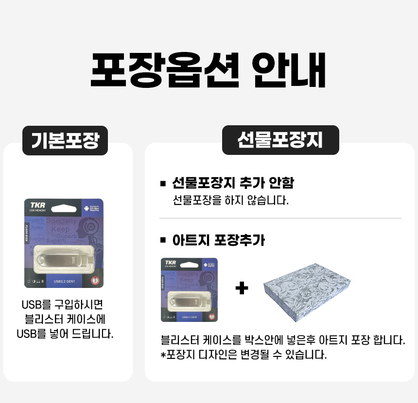 - ÆÐŰÁö, ¼±¹° »óÀÚ µî ¿É¼ÇÀ» Ãß°¡ÇÏ¿© ¹è¼Û ÈÄ ¹ÝǰµÈ »óǰÀÇ ¼±¹°»óÀÚ°¡ ÈѼյǾú°Å³ª µ¿ºÀÇÏÁö ¾ÊÀº °æ¿ì, ÇØ´ç ºñ¿ë °øÁ¦ ÈÄ È¯±ÞµÉ ¼ö ÀÖ½À´Ï´Ù.
